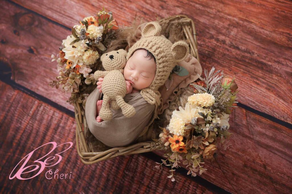 たくさんのクマさんに埋もれちゃうポーズや、アンティークなカゴに入ったオシャレなスタイルも✨