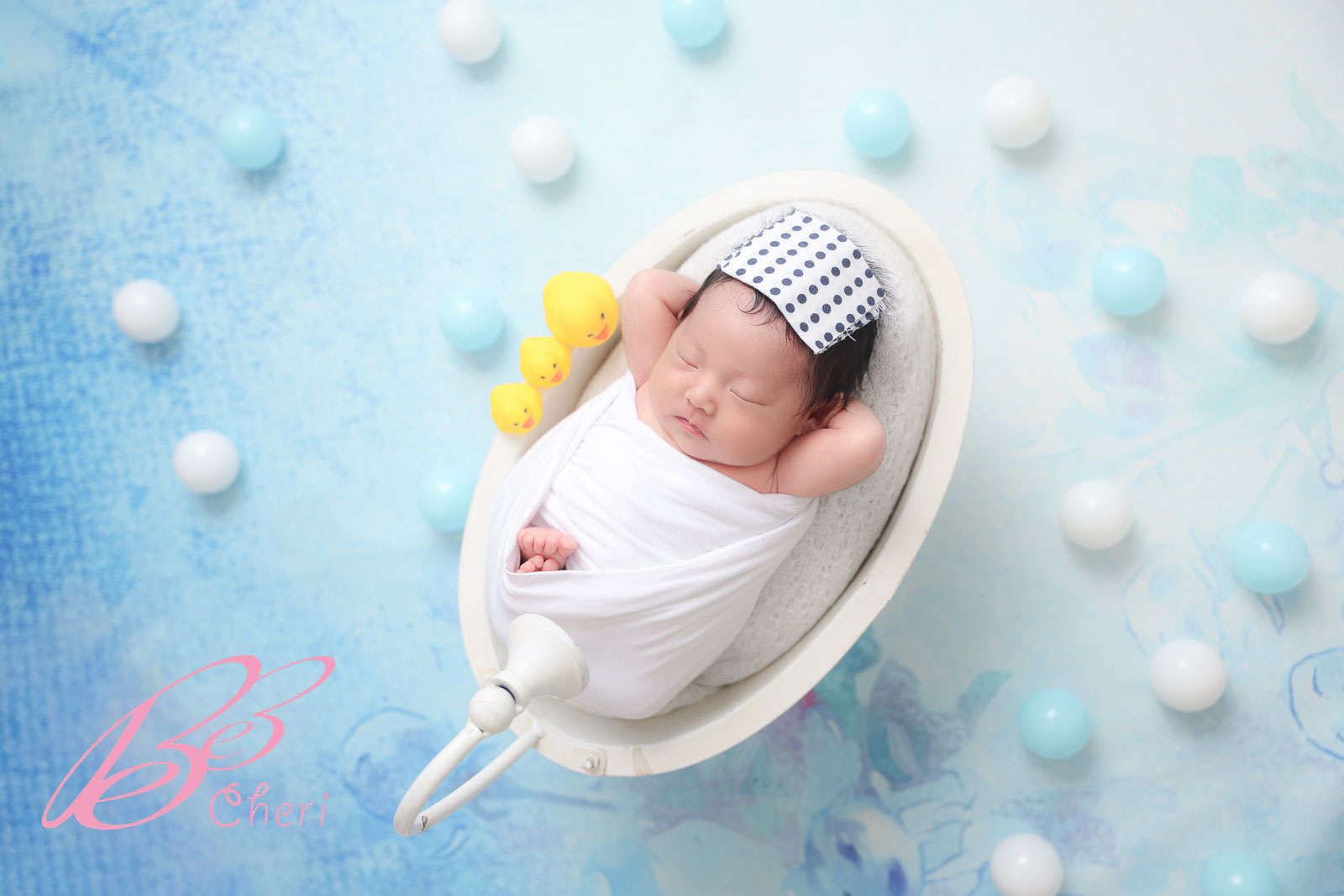 後から編集ソフトでその手を消す「コンポジット(合成)」という技術を使っているから、赤ちゃんには一切無理な負担をかけていません!✨