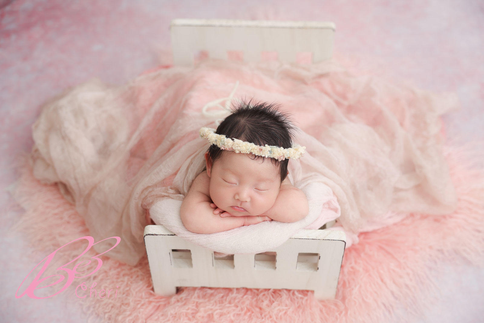 ピンクのファーとお花の冠が、女の子らしさをさらに引き立ててくれます🌸💕
